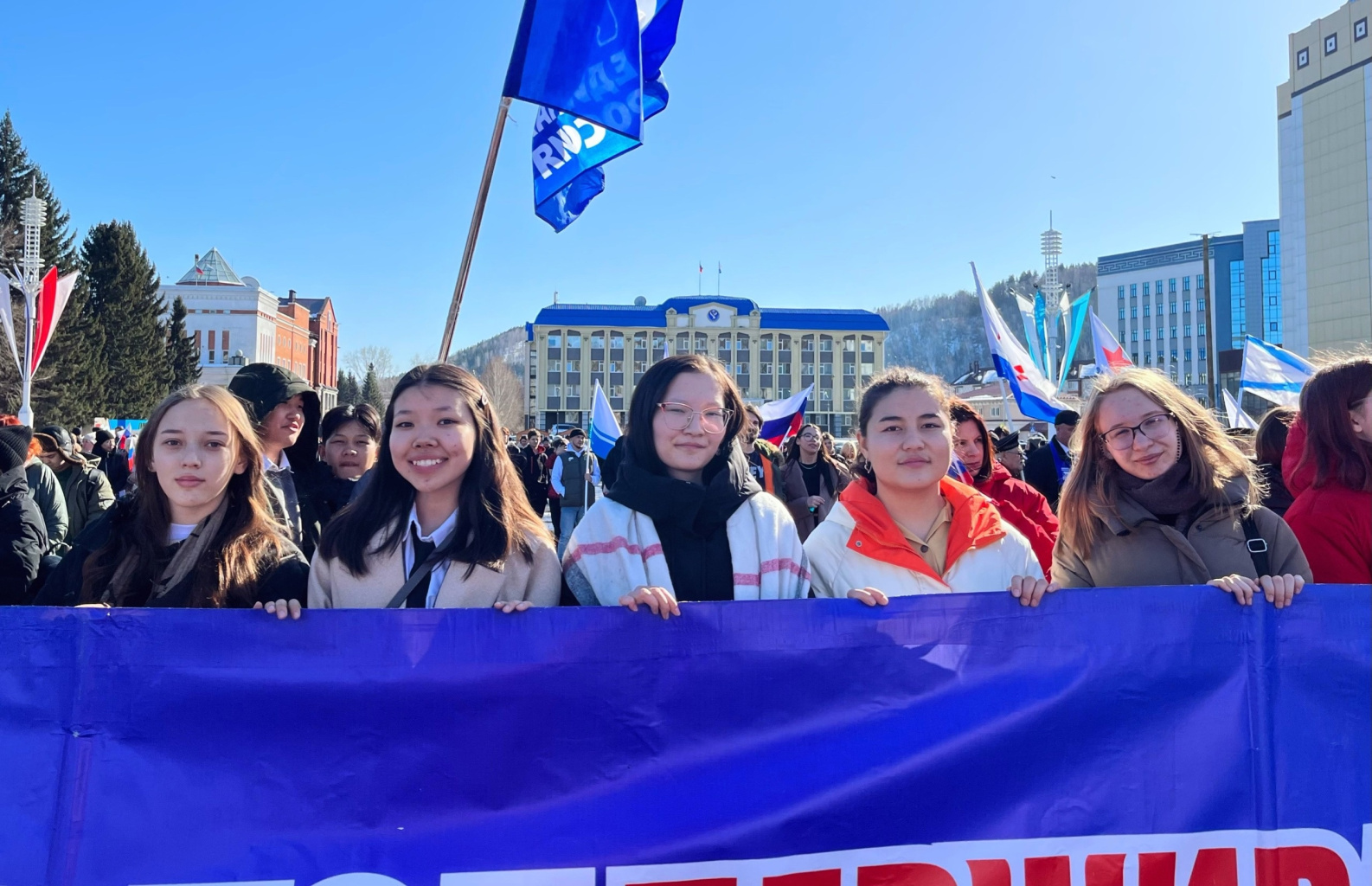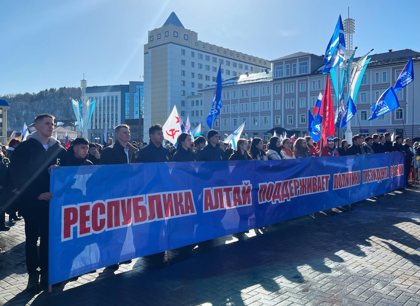 На центральной площади города Горно-Алтайска прошёл митинг-концентр «Мы вместе», посвящённый 10-летию со Дня возвращения Крыма и Севастополя в состав России. Участие в мероприятии приняли студенты, преподаватели и сотрудники Горно-Алтайского государственного университета.