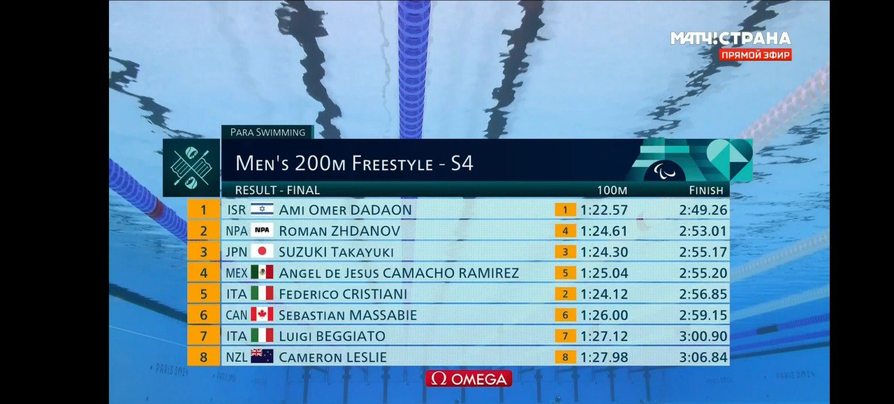 Также вчера завершился финальный заплыв на паралимпиаде-2024 в Париже. Роман – в тройке! По результатам заплыва у мужчин на дистанции 200 метров вольным стилем Роман Жданов стал серебряным призером! Три года назад в Токио на этой дистанции он был третьим.
