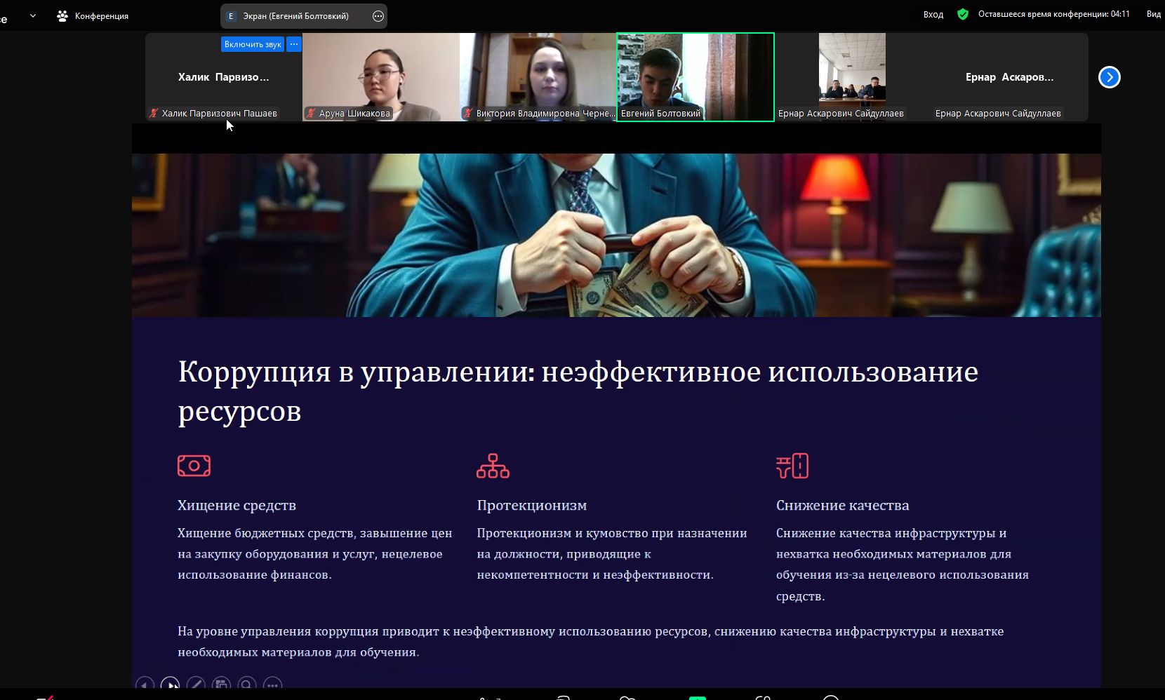 - влияние коррупции на современную образовательную систему;