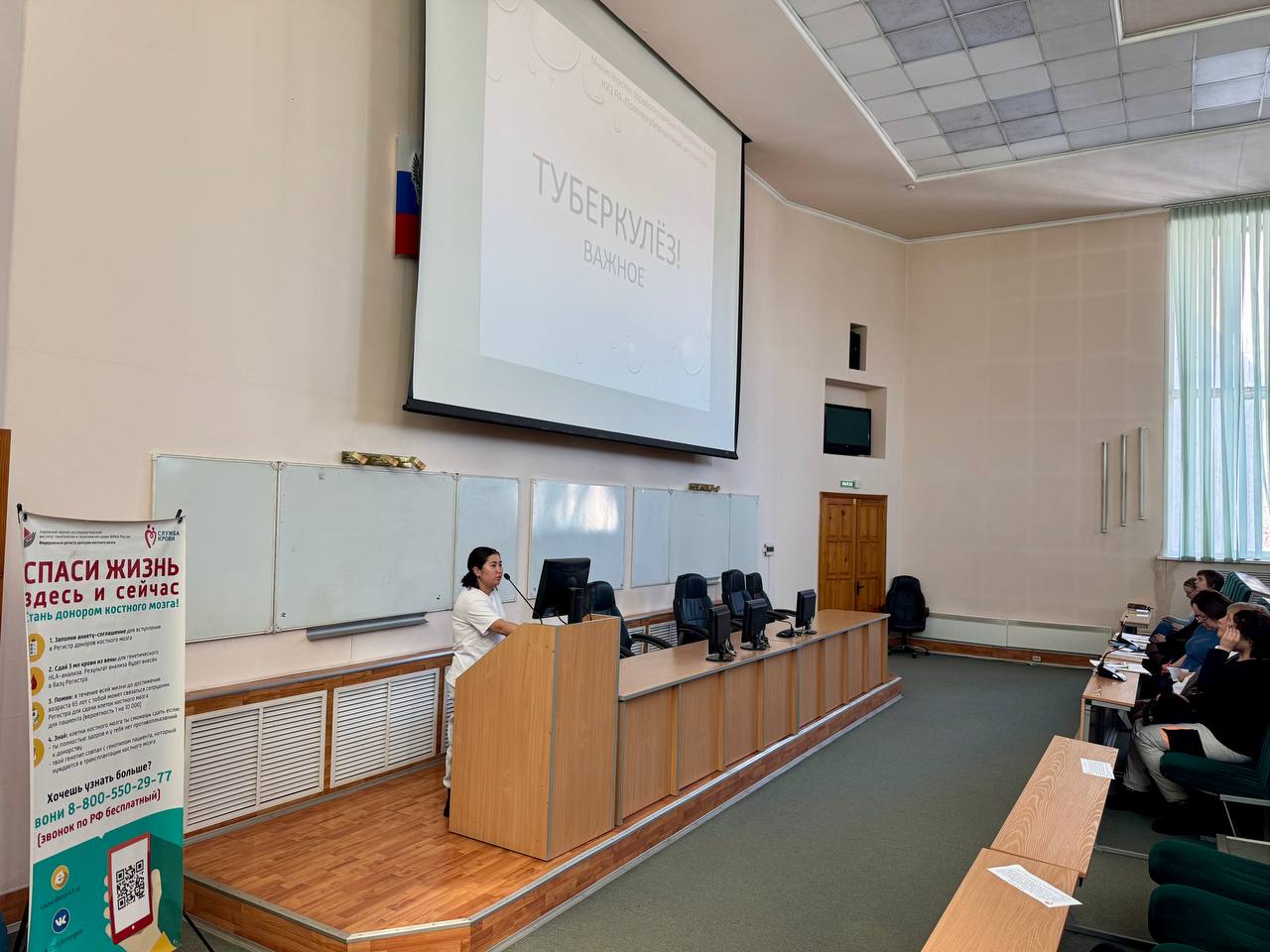 Выступили перед студентами и представители медицины. Так, врач-фтизиатр Роза Сирикжановна Ташмаматова рассказала о профилактике туберкулеза и других заболеваниях дыхательной системы, а врачи-трансфузиологи Наталья Александровна Новикова и Татьяна Николаевна Савина - о том, кто такой донор и как им стать.