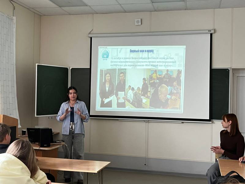 2. С профориентационной информацией о факультете выступила д.п.н., профессор Альбина Алексеевна Темербекова, познакомив старшеклассников с перспективами трудоустройства выпускников физмата в регионе. Она подчеркнула, что базовое инженерное образование является сегодня средством социально-экономического и технологического развития общества. Школьникам рассказали о направлениях подготовки на факультете, перспективах проектно-практической деятельности, возможностях стажировок, о работе различных клубов, секций и других развивающих студентов структур вуза. Информация по ВУЦ вызвала у школьников оживленные вопросы и обсуждения;