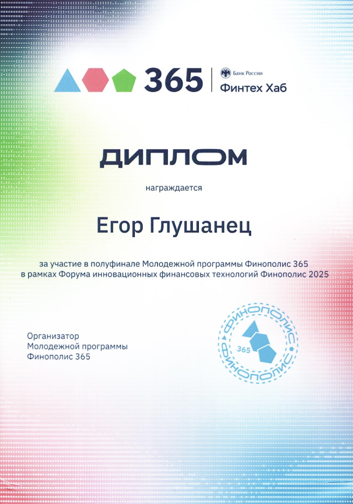 «Мы решали кейс от Московской биржи, «Инвестиционный помощник на основе сервиса агрегации финансовой информации клиента» и заняли четвертое место из двадцати команд в своем треке» - отмечает участник, Егор Глушанец.
