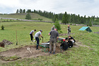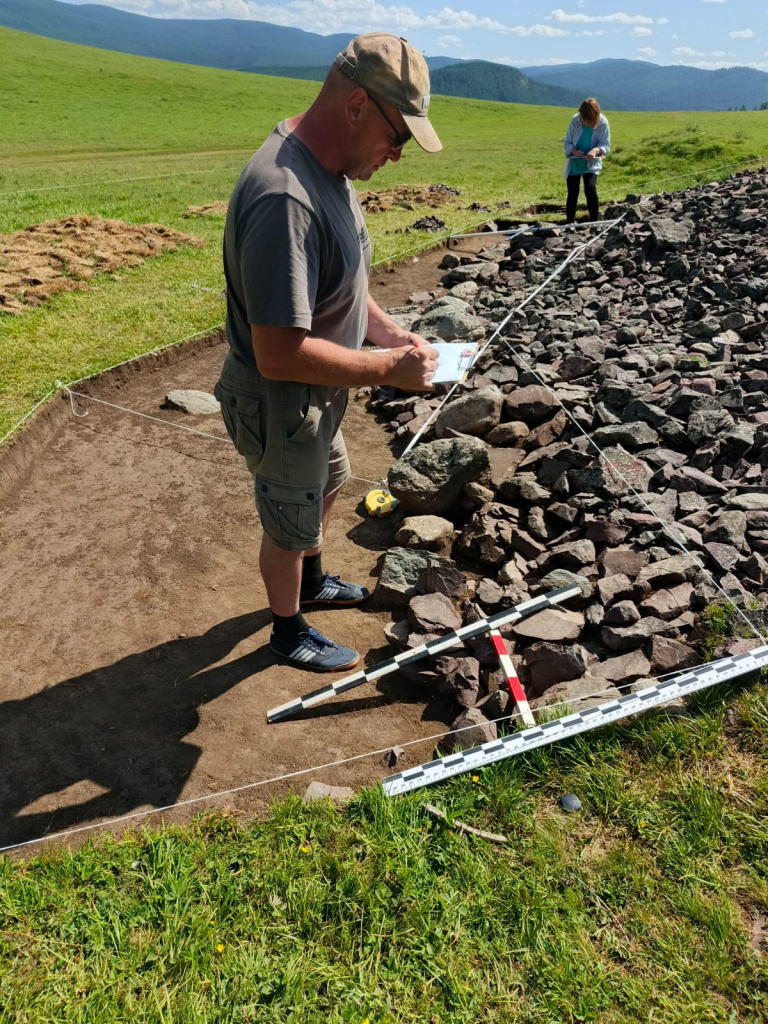 Исследователь рассказал, что в этом году археологическая группа провела расчистку отвалов 1947-1949 годов, сделанных экспедицией Сергея Ивановича Руденко. Также зачищена восточная пола кургана № 4, самого маленького из пазырыкской группы, для уточнения особенностей погребальной архитектуры, выполнения крепиды, установки каменных плит. В отвалах среди артефактов зафиксированы фрагменты бересты (вероятно, от перекрытий погребальной камеры), кости животных и человека (фаланги пальцев, ребер, бедренных костей), фрагменты металлических изделий. По сути, археологическая группа провела подготовительную работу для дальнейшей реконструкции кургана № 4, исследования погребальной камеры и выполнения насыпи.