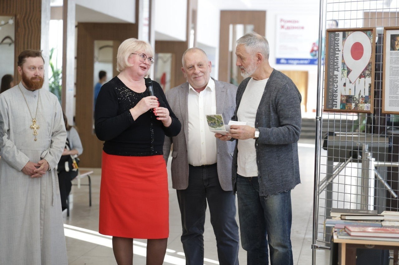 В Горно‑Алтайском государственном университете стартовала уникальная выставка иллюстраций «9 книг» — персональная экспозиция заслуженного художника Республики Алтай Алексея Константиновича Дмитриева.