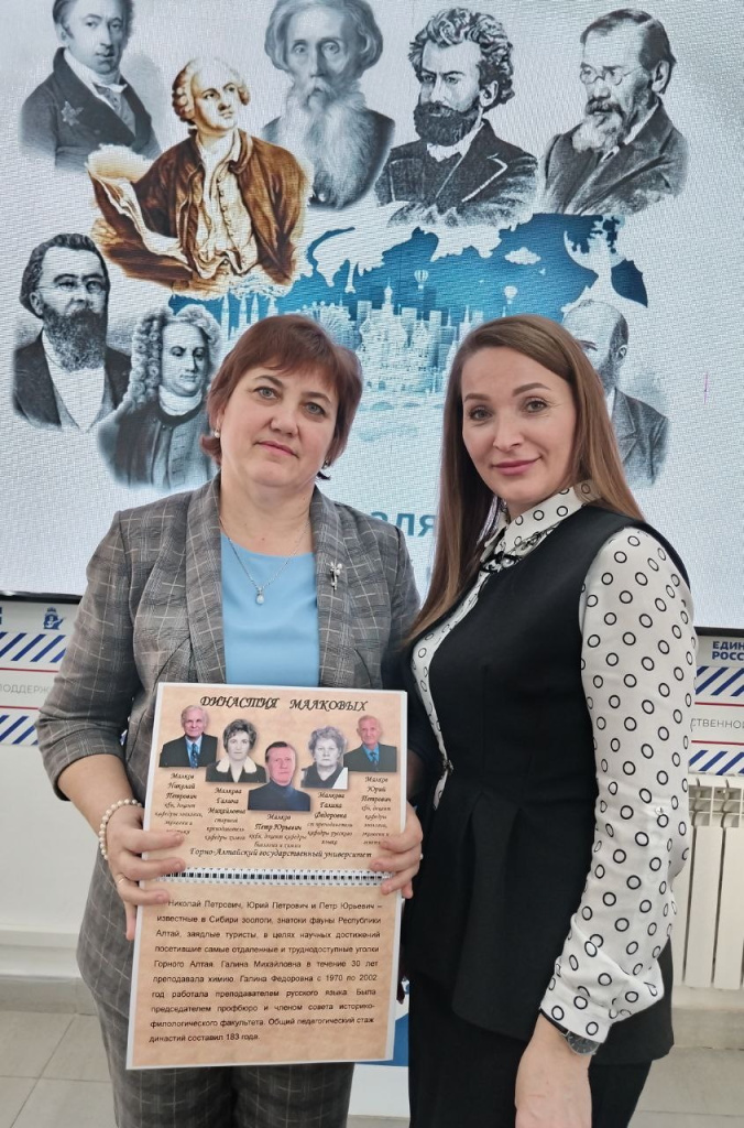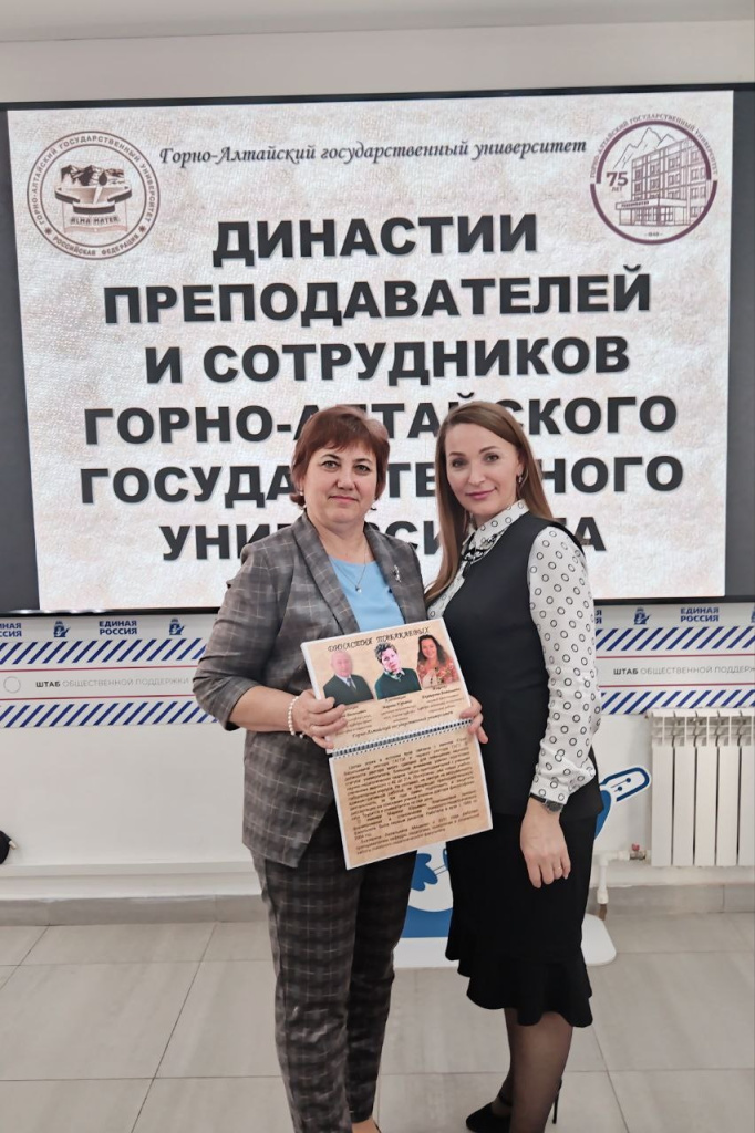Руководитель библиотечно-издательского центра ГАГУ Людмила Витальевна Майорова представила собравшимся, в числе которых и обучающиеся Республики Алтай, уникальный альбом «Династии преподавателей и сотрудников Горно-Алтайского государственного университета» – живую летопись семей, для которых наука и педагогика стали общим делом жизни.