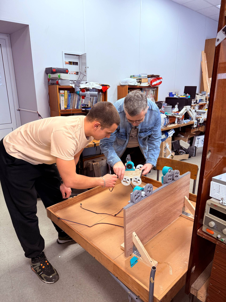 Значительный опыт был получен в рамках подготовки к олимпиадам по робототехнике. Студенты создали робототехническую тележку «Рисовальщик» для вертикальных поверхностей, разработали приводы для двигателей Nema 17 и адаптировали решение для различных платформ. Еще одним перспективным проектом стал робот для тренировки по настольному теннису, который позволяет варьировать траекторию и скорость подачи мяча. В дополнение к нему создаются мобильные роботы-сборщики мячей, оснащенные специальными манипуляторами.