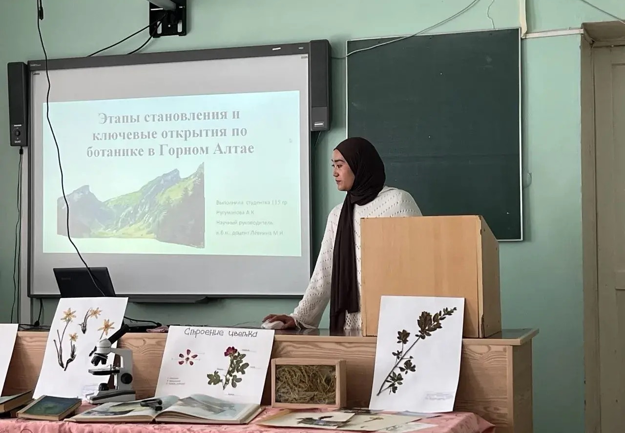 20 апреля 2026 года на естественно-географическом факультете Горно-Алтайского государственного университета в рамках LX научно-практической конференции студентов, аспирантов и молодых учёных, посвящённой Десятилетию науки и технологий, прошло заседание секции «Ботаника». Заседание вела кандидат биологических наук, доцент кафедры биологии и химии Лёвкина Марина Николаевна.